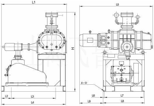 根據(jù)被抽真空系統(tǒng)的大小及氣體狀態(tài),羅茨旋片真空機(jī)組各泵之間的名義抽速之比一般在4∶1至10∶1之間,前者適用于較大真空系統(tǒng)及長(zhǎng)時(shí)間在較低入口壓力或極限真空情況下工作。本系列羅茨旋片真空機(jī)組為了防止前級(jí)旋片真空泵停機(jī)返油,在前級(jí)管道上裝有電磁放氣閥,其動(dòng)作與前級(jí)旋片真空泵的電機(jī)聯(lián)動(dòng)。