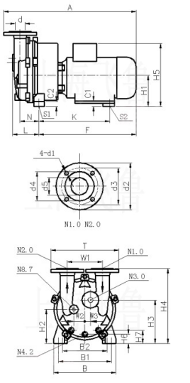 2BV型水環(huán)式真空泵外型及安裝尺寸